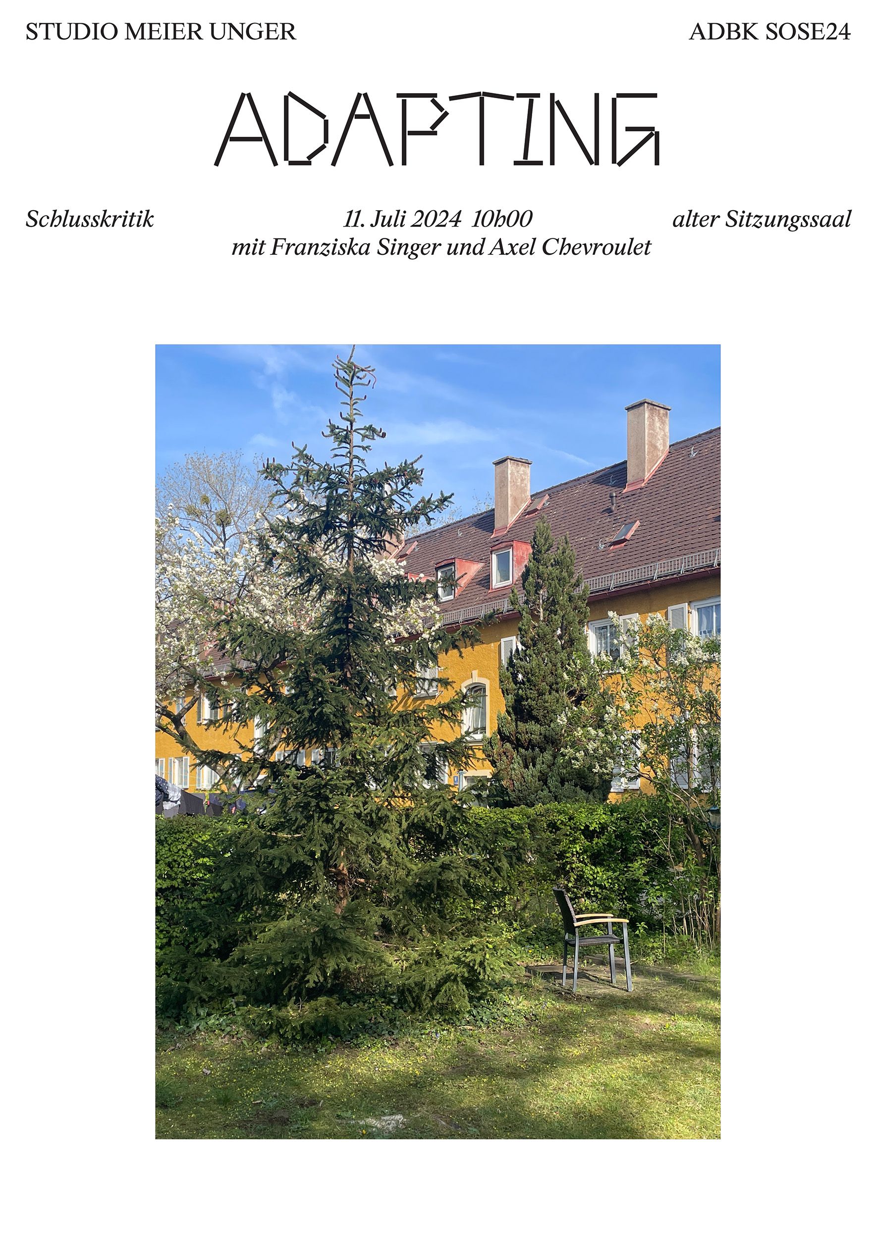 Einladung zur Schlusskritik, ADAPTING, Studio Meier Unger, SoSe24, Akademie der Bildenden Künste München, 11. Juli 2024
