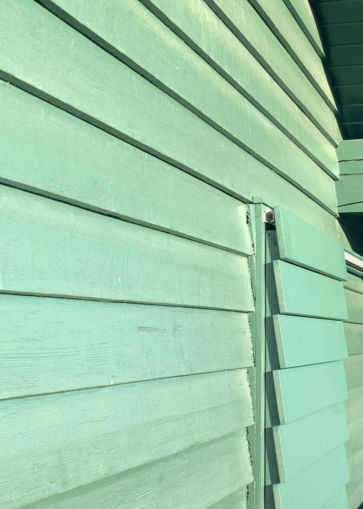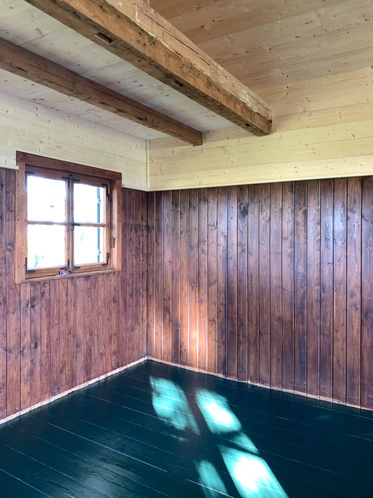 Frisch gestrichen! Boden der Hütte im Grünen, Oktober 2019
