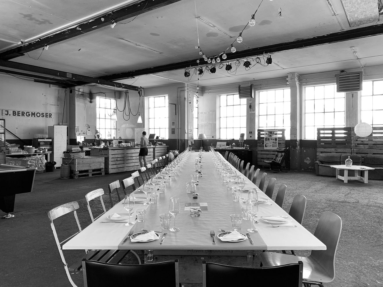 Der lange Tisch für das Grosse Essen in der Atelier Werkstatt, August 2019