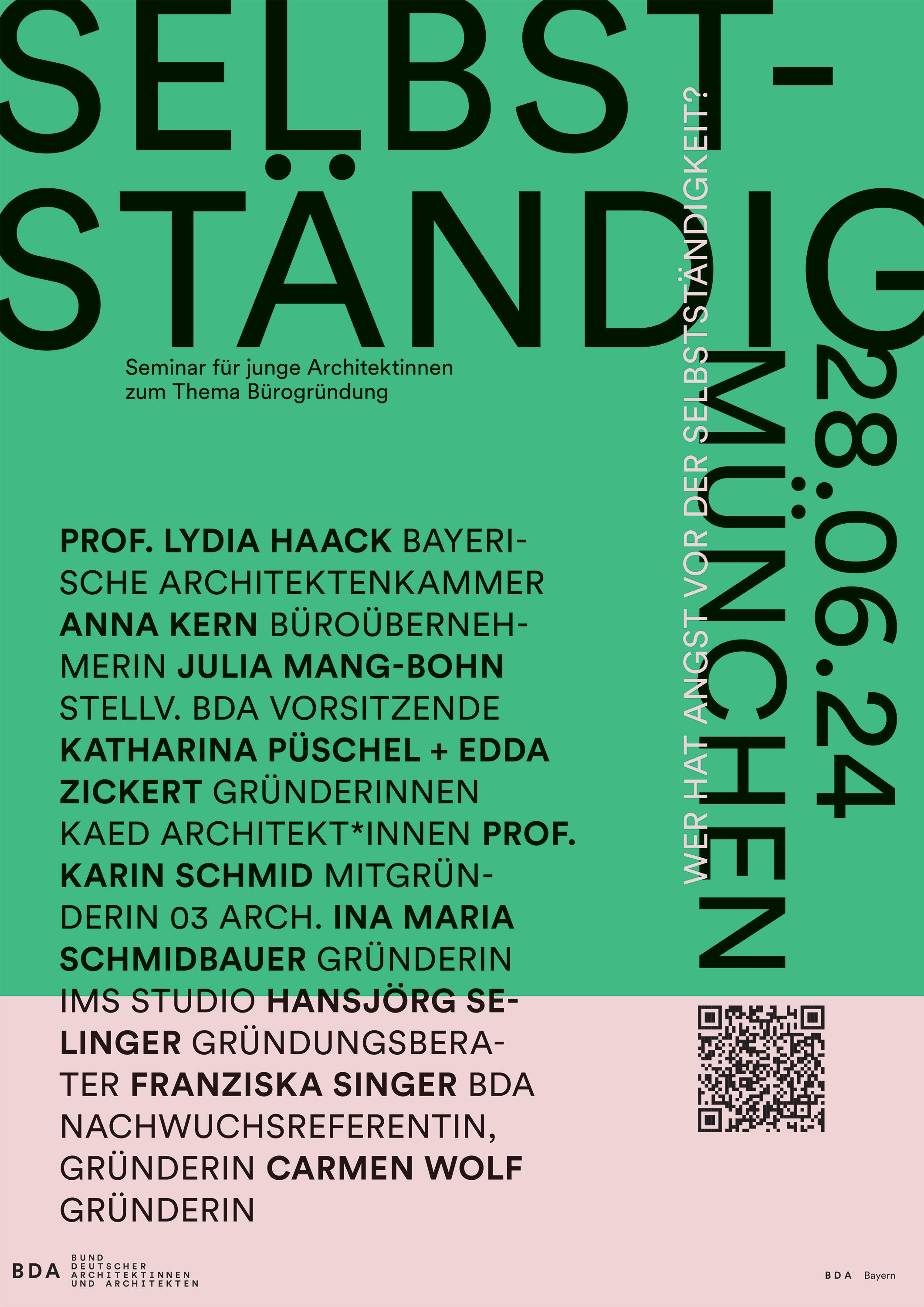 Seminar SELBSTSTÄNDIG für Architektinnen, BDA Bayern, 28. Juni 2024