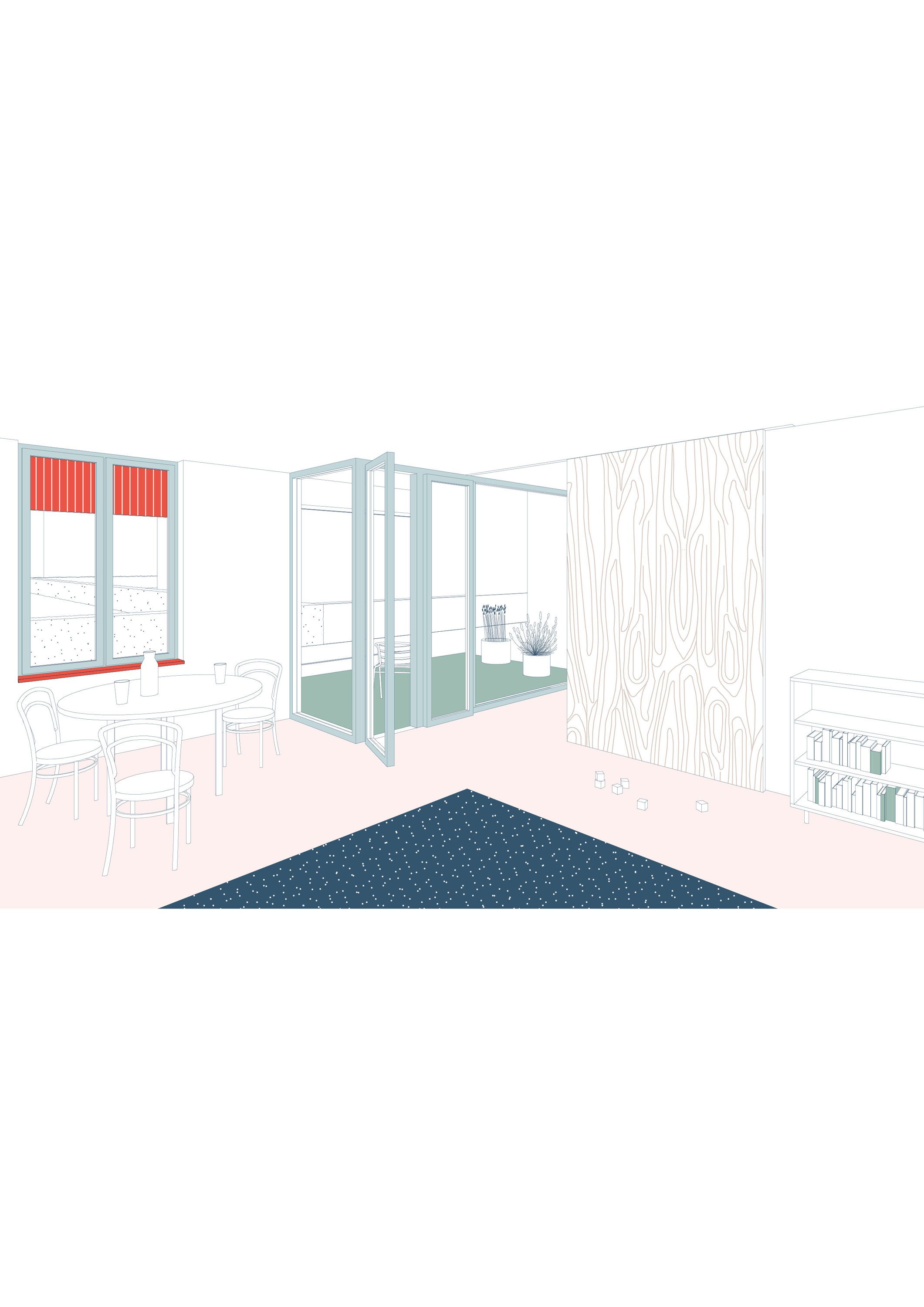 Der Entwurf untersucht wie ein Mehrfamilienhaus mit möglichst einfacher Konstruktion und Typologie mit hochwertigen Materialien umgesetzt werden kann und attraktiven Wohnraum zum Mieten schafft. Der Bauplatz ist ein längliches Grundstück in Zentrumsnähe einer Allgäuer Kleinstadt. Die Wohnungen mit zwei bis vier Zimmer sollen von verschiednen Bewohner:innen gut bewohnt werden können und attraktive Wohn- und Aussenräume bieten. Unter einem grossen Dach befinden sich in einem zweigeschossigen, langen Haus mehrere Wohnungen. Jede Wohnung ist Nord- und Süd ausgerichtet und wird über einen Weg und Aussentreppen direkt erschlossen. Unterirdische Fahrzeugstellplätze und Aufzüge sind nicht notwendige, die Anforderungen an die Haustechnik werden durch die Grundrissaufteilung der Wohnungen reduziert. Die nordseitigen Hoffläche sowie der Garten im Norden wird gemeinsam genutzt, während auf der Südseite durch die Staffelung des Gebäudevolumens für jeden Wohnung private Sitzplätze und Gärten sowie grosse Südbalkone im Obergeschoss sich befinden.