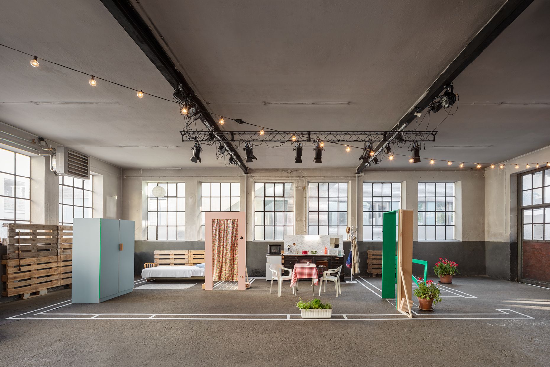 Das Bühnenbild für die Farce "Non Si Paga!"ist zusammengesetzt aus wohnlichen Fragmenten, die Erinnerungen an eine vermeintlich bekannte Wohnung hervorrufen. Präzise gewählte Farben, Muster und Oberflächen sowie angedeutete architektonische Elemente bilden den Rahmen für und gewähren Einblicke in die Handlung. Absurdes und Unsinn sind sowohl in der Farce von Dario Fo als auch im Bühnenbild zu finden.